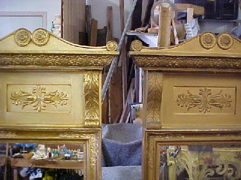 Afdækning af danske empirespejle, hvor vi ser det bagerste spejl stå i sin oprindelige glans og charme efter afdækning