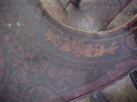 Afrensning af gammelt fernislag samt restaurering af fransk blomsterbord i empirestil ca. 1810. Læg specielt mærke til de smukke intarsiaindlægninger på bordpladen.
