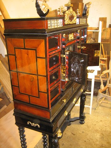 Restaurering af et 1600-tals pragtskab i skildpaddeskjold og palisander.