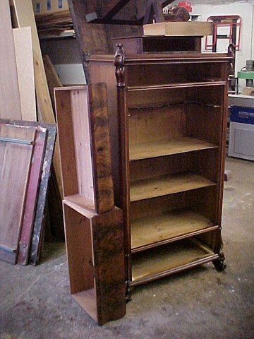 Ja, så beskidt kan et skab være! Afrensning af fedt, snavs og cigarrøg, hvorefter skabet er poleret op med ny lak.