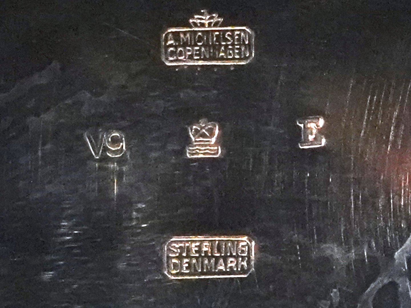 Der er monteret et flot låg i sterlingsølv. Låget er udført hos Anton Michelsen sølvsmed og er også mærket med Royal Copenhagens tre bølger.