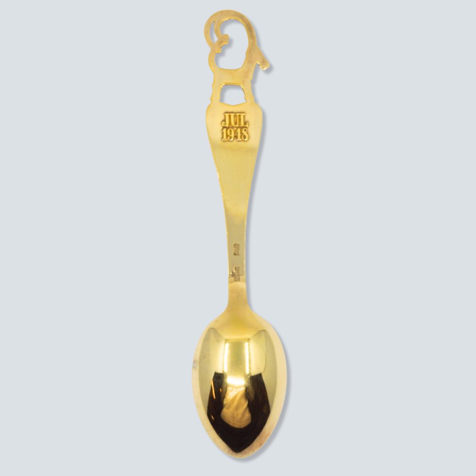 Ilse Nanbaldian for A. Michelsen; Juleske 1948. Juleske af forgyldt sterling sølv med emalje. Design Ilse Nanbaldian.