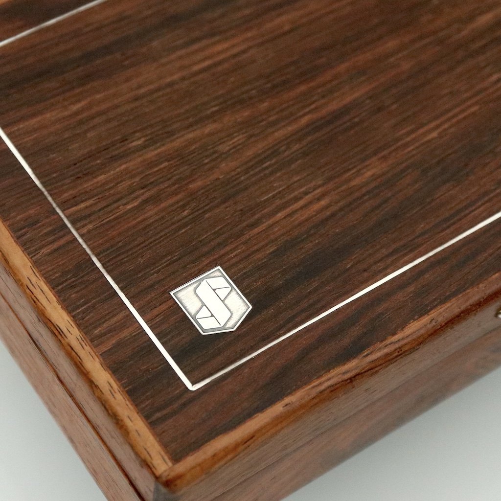 Æske i palisander med sterlingsølv intarsia. 1960erne.