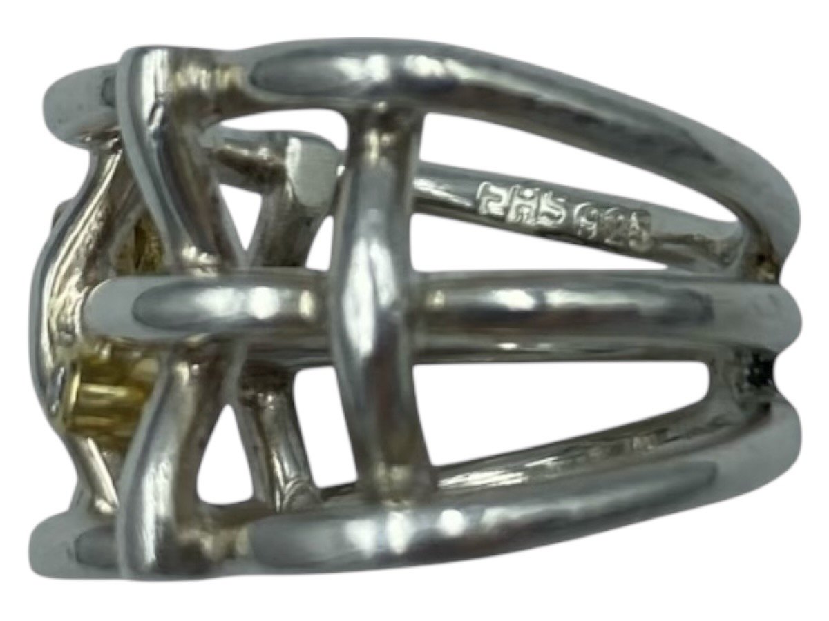 Frits Heiring Sørensen sterlingsølv, moderne og bred ring med to sten- Str. 51-