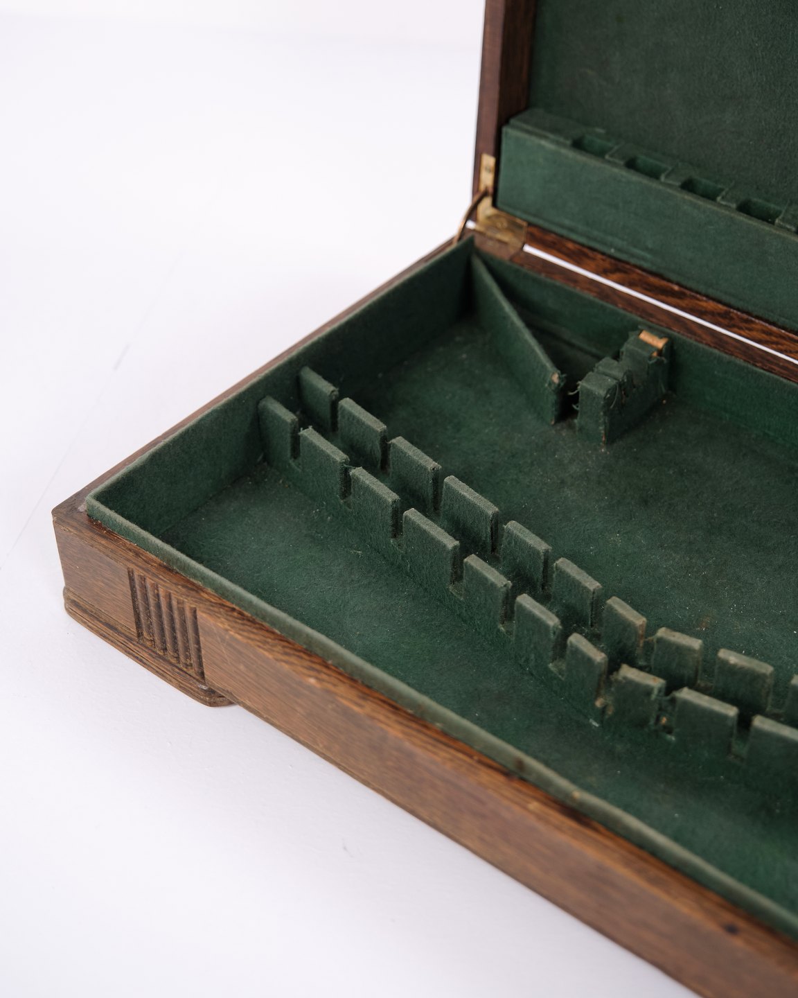 Bestikkasse - Egetræ - Grøn - Messing beslag - Antik