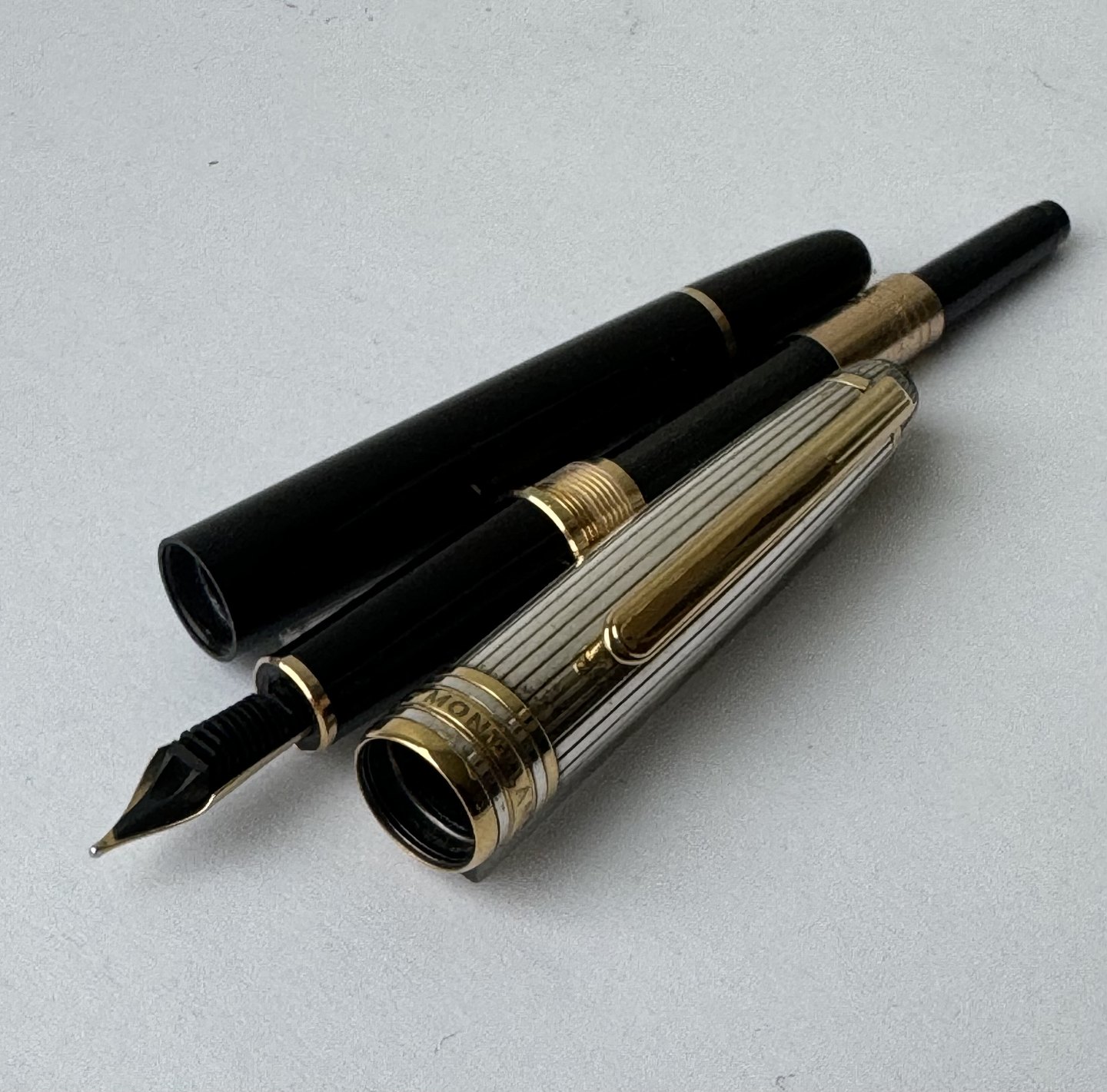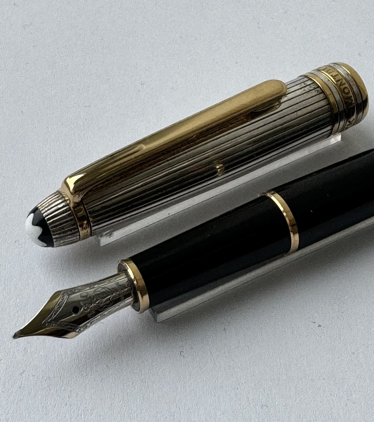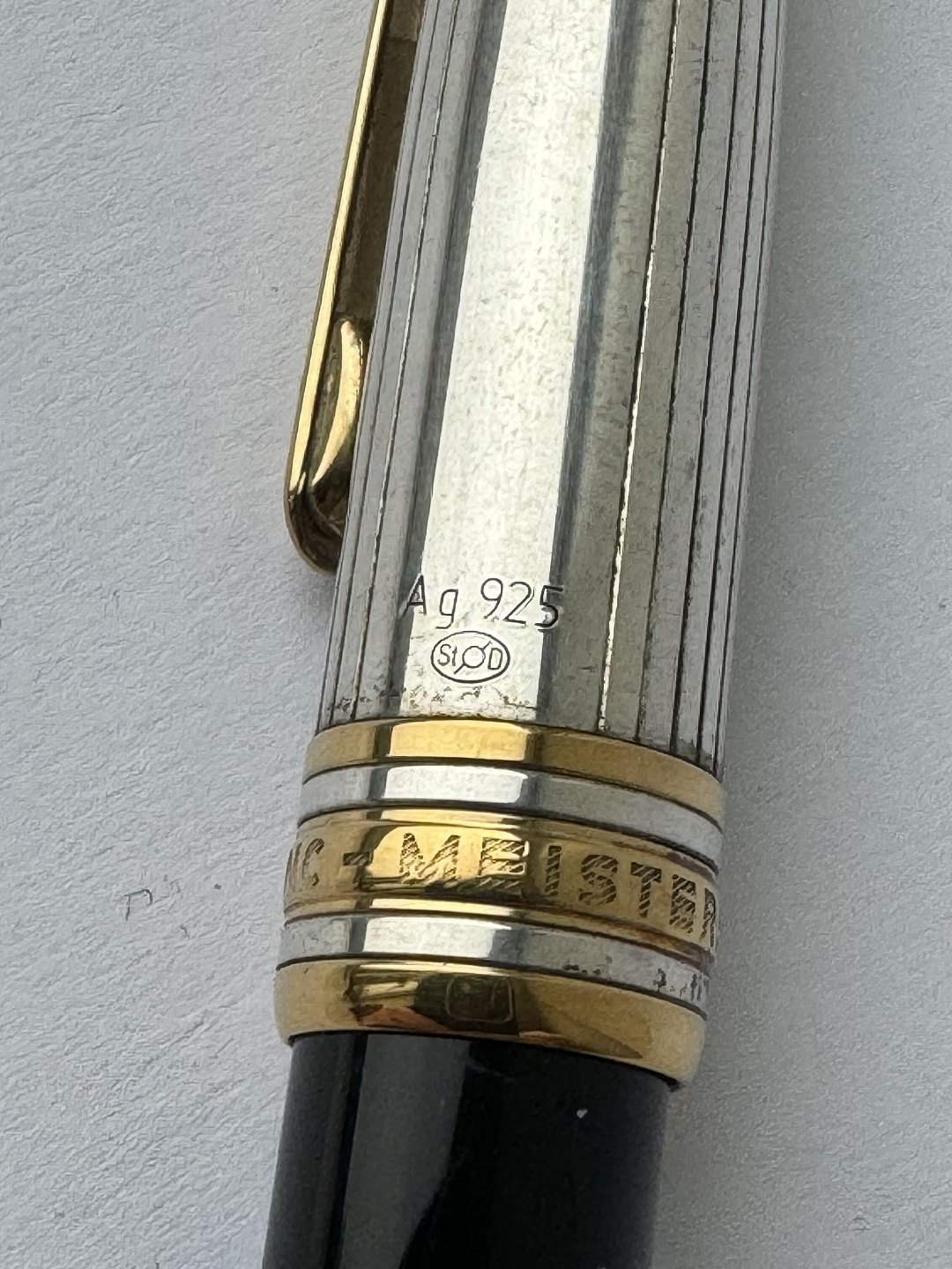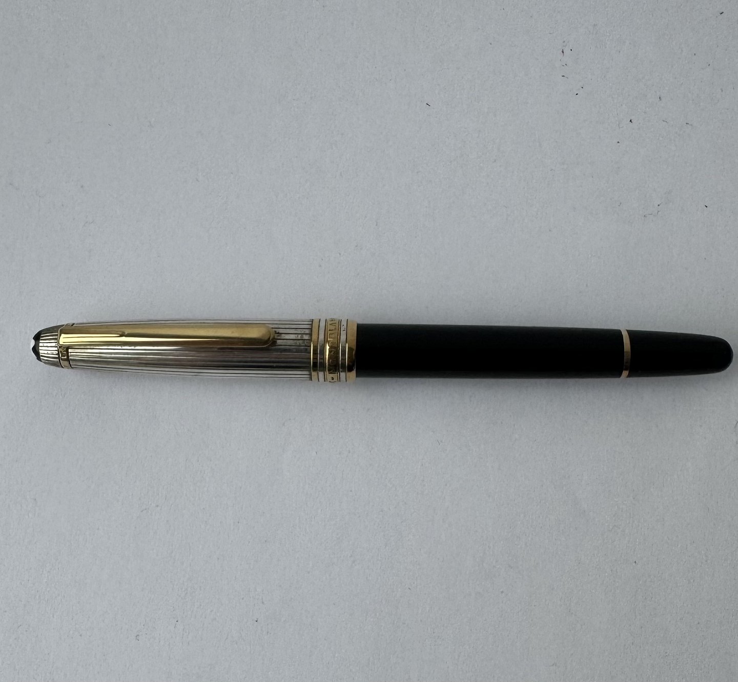 Montblanc Meisterstuck Solitaire Doue 925 Sterling Sølv fyldepen. I god og skriveklar stand. Alle dele originale til denne model inklusiv en to-farvet 18 karat guldspids.
