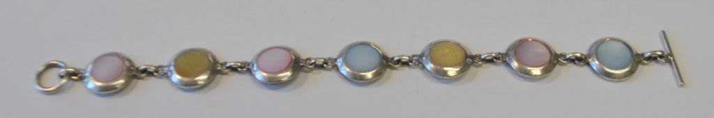 Armsmykke i sterlingsølv med perlemor, 20. årh. Stemplet. L.: 18,5 cm.