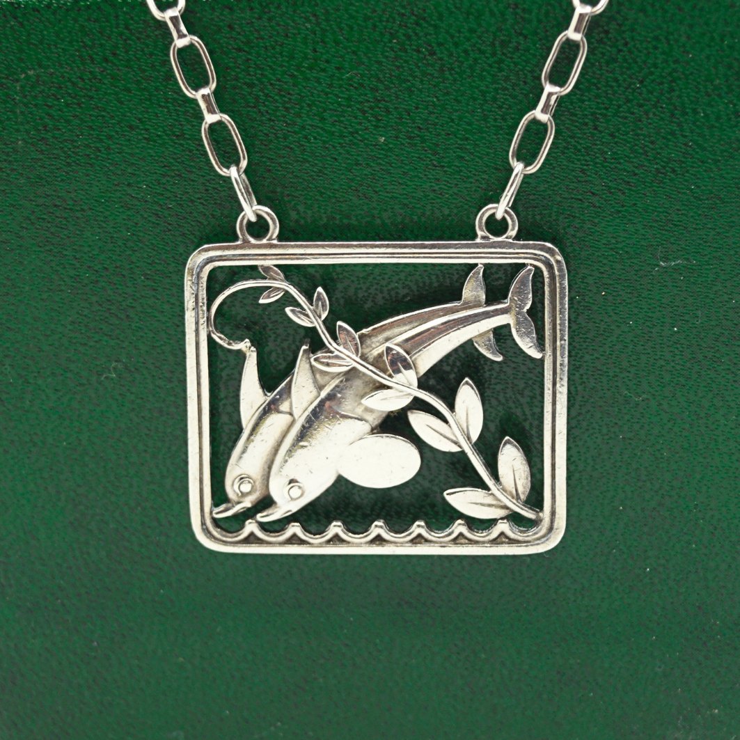 Vedhæng 3,8 x 3,1 cm. Halskæde l. 75 cm.
