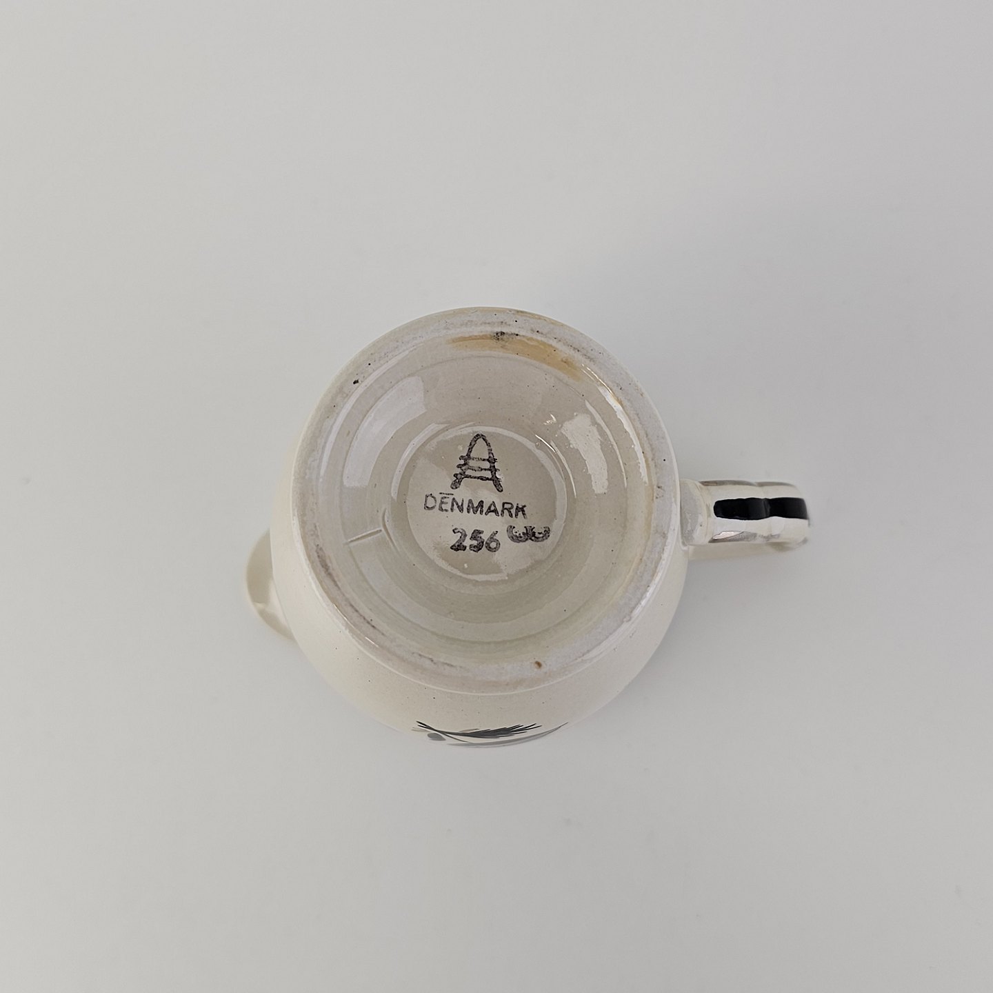 Flødekande i fajance fra stellet Dragsholm fremstillet i perioden 1934-1965.