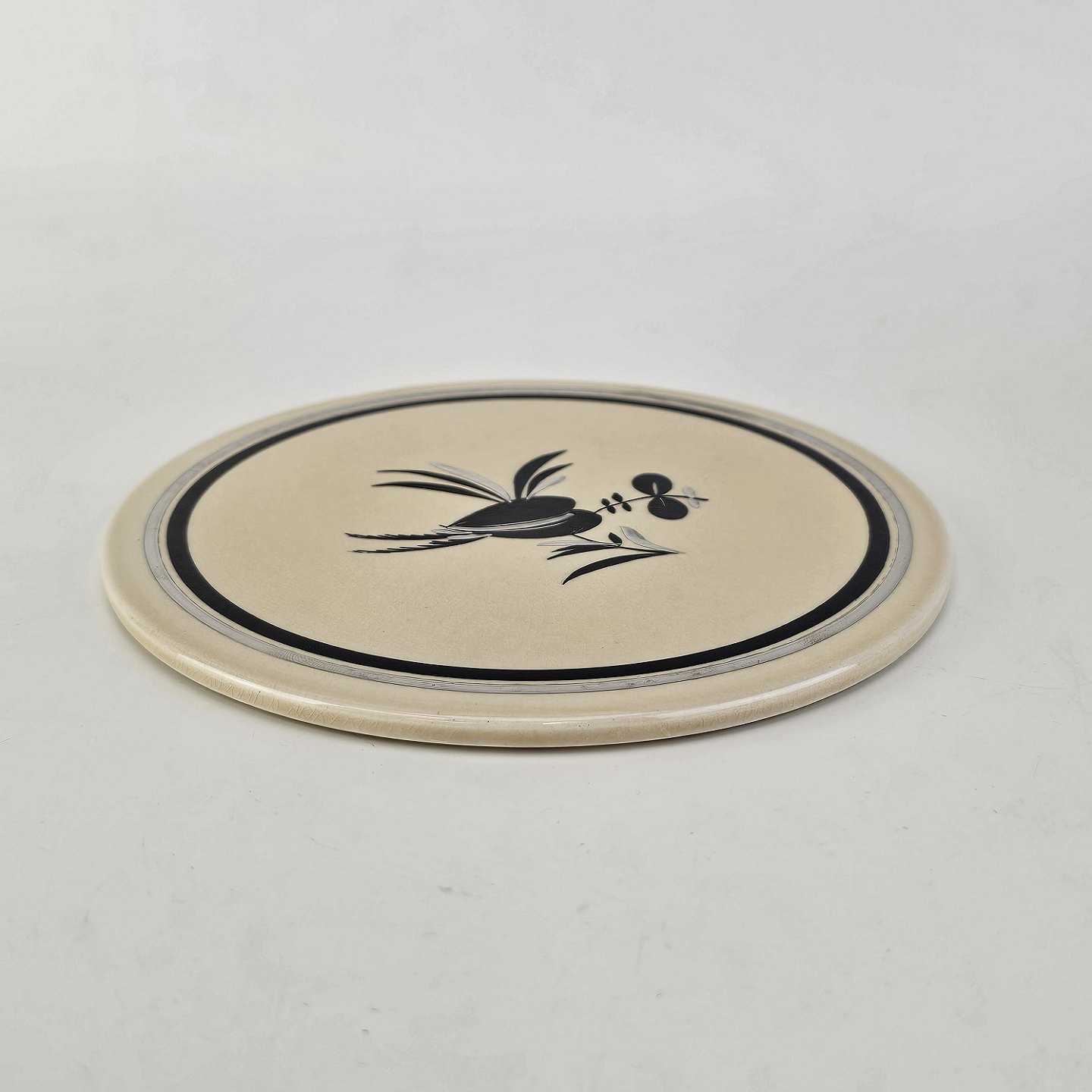 Smørbræt i fajance fra stellet Dragsholm fremstillet i perioden 1934-1965.