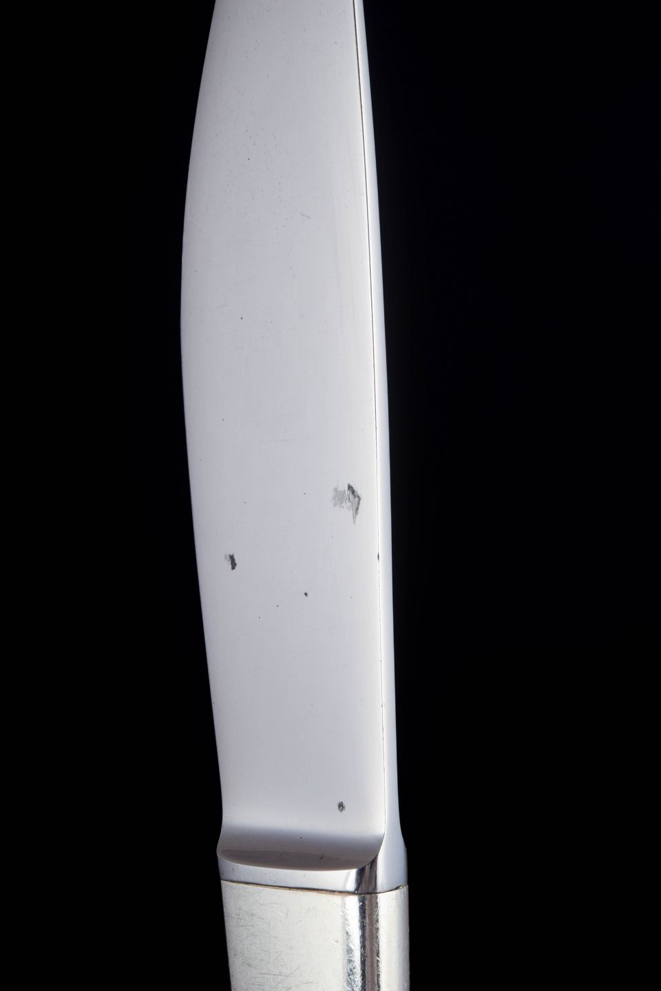 Frokostkniv i rustfrit stål og sterlingsølv i modellen Caravel, designet af Henning Koppel for Georg Jensen. Kniven er udført i et stramt og elegant formsprog med slanke linjer og let konisk form, karakteristisk for Koppels modernistiske design.