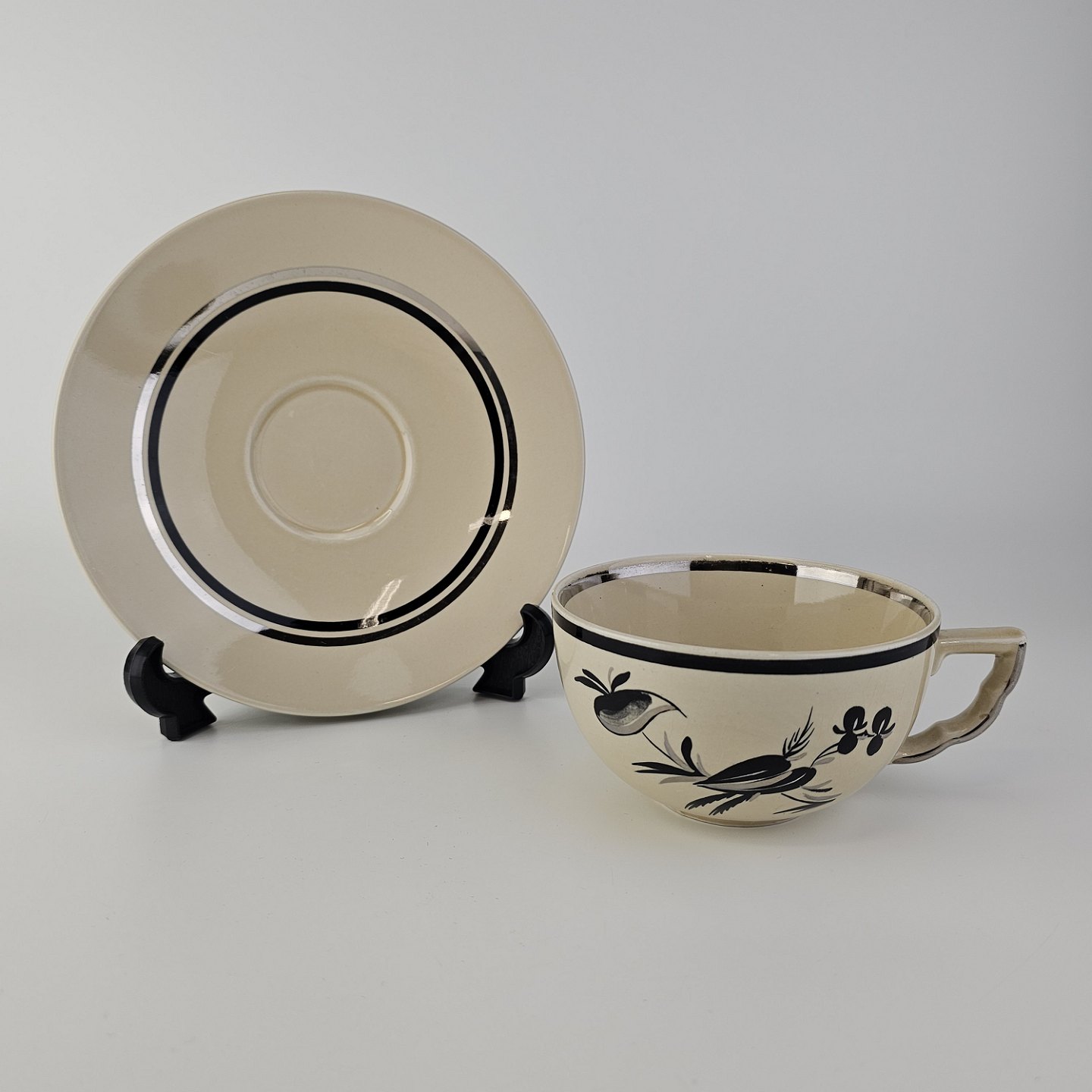 Tekop med underkop i fajance fra stellet Dragsholm fremstillet i perioden 1934-1965.