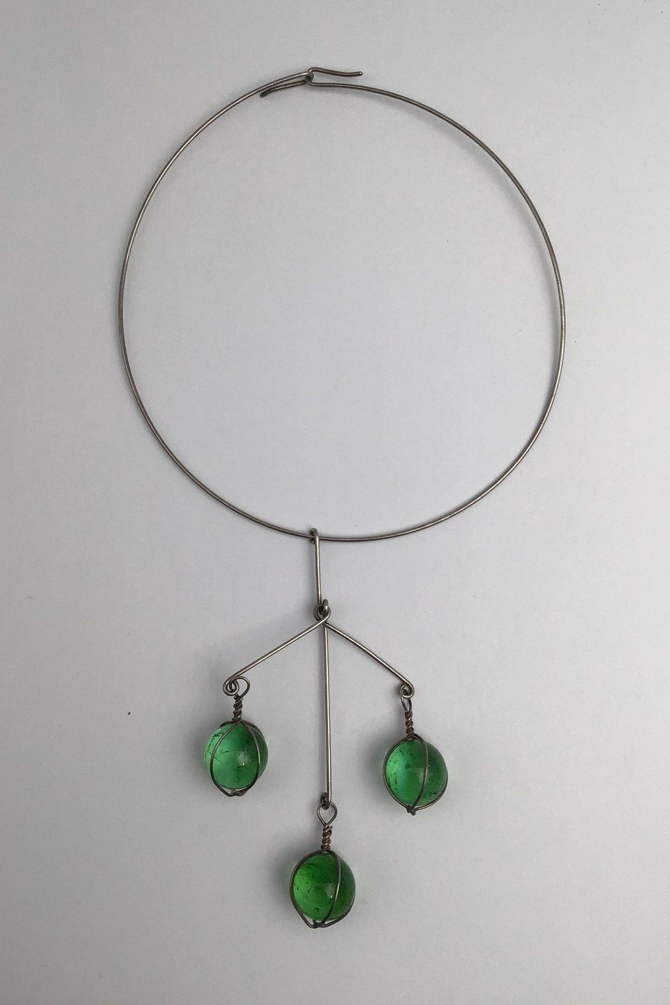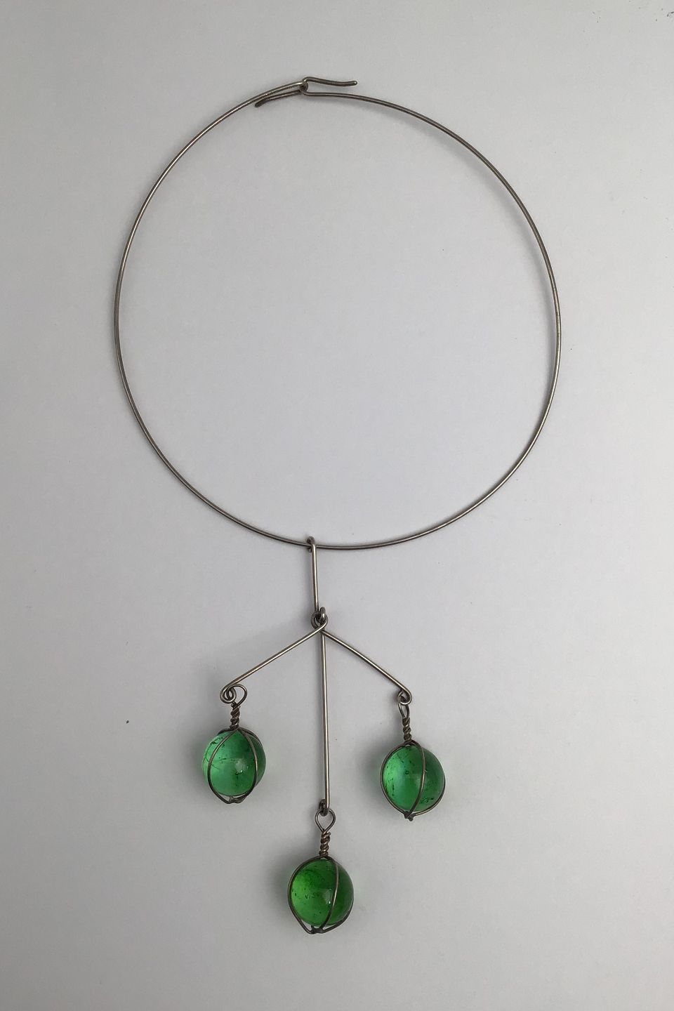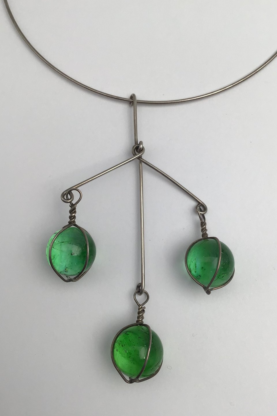 Bent Knudsen Sterling Sølv Halsring med Vedhæng (Grønne Glasperler)
