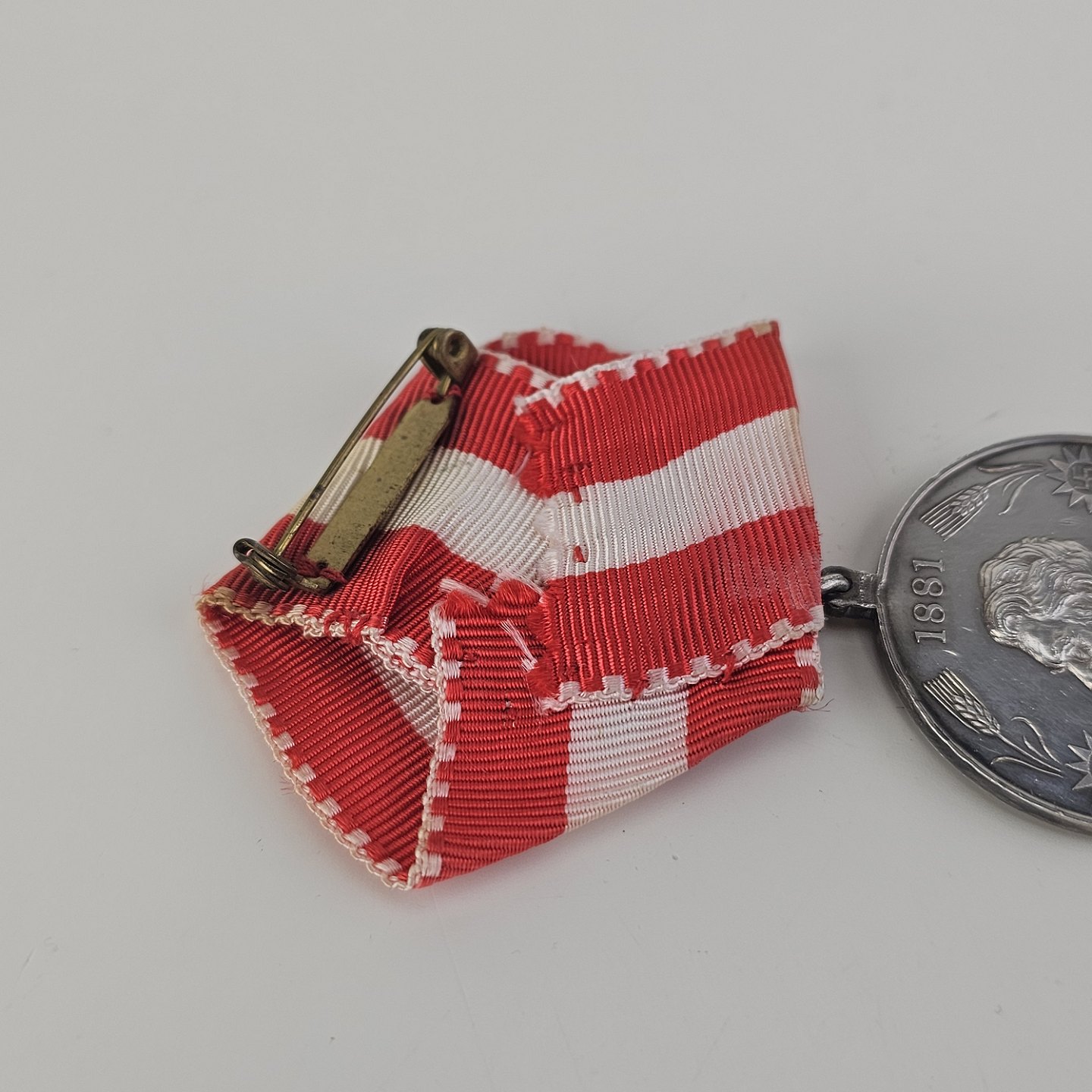 Carlsberg jubilæumsmedalje i sølv med Carlsberg 1847 graveret på den ene side og "Laboremus pro patina" 1881 på den anden