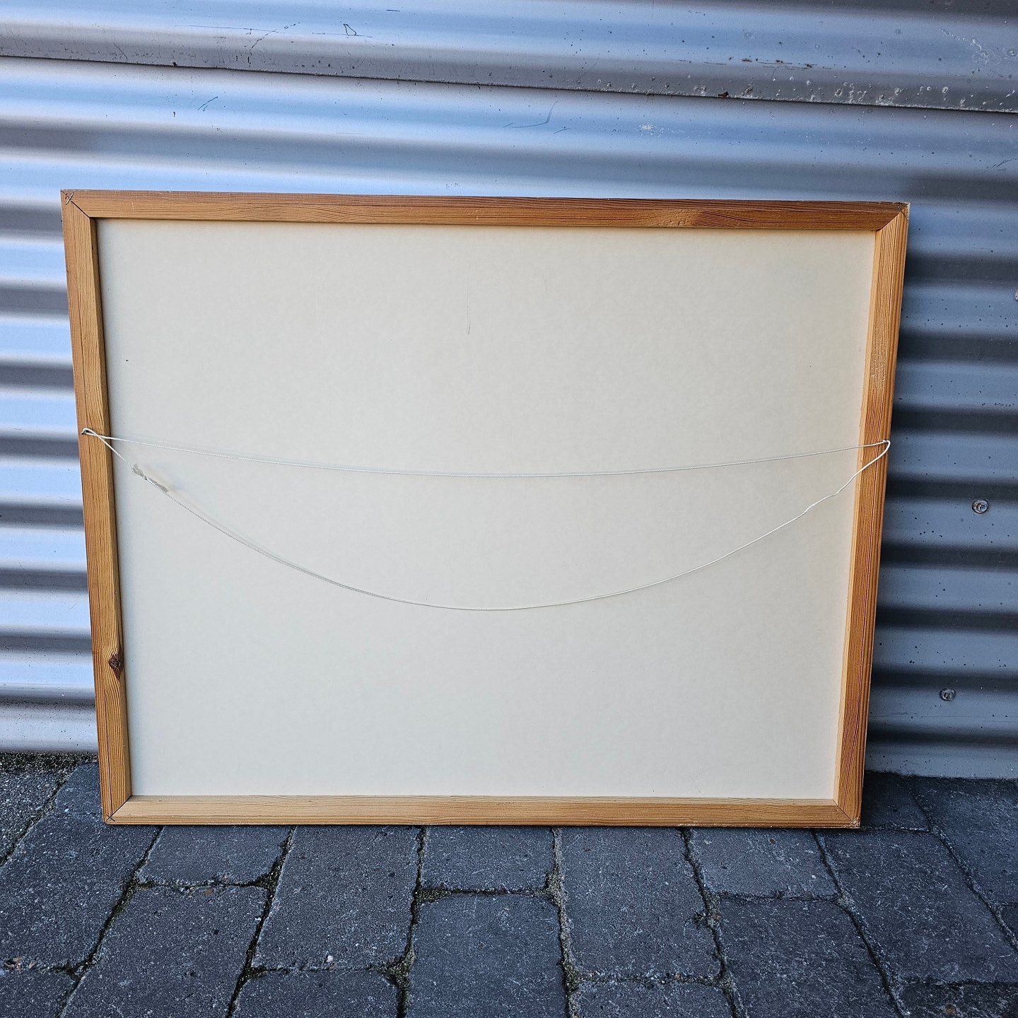 Oliemaleri på papir med abstrakt motiv af mennesker. Monteret i sølvfarvet ramme, dateret 1987