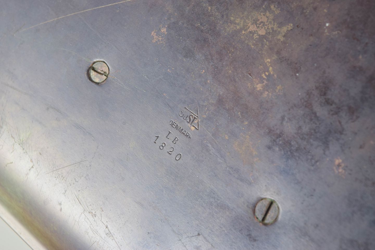 Blækhus i legeret bronze med rektangulær bakke, kvadratisk beholder med låg og original glasindsats. Model LB 1820.