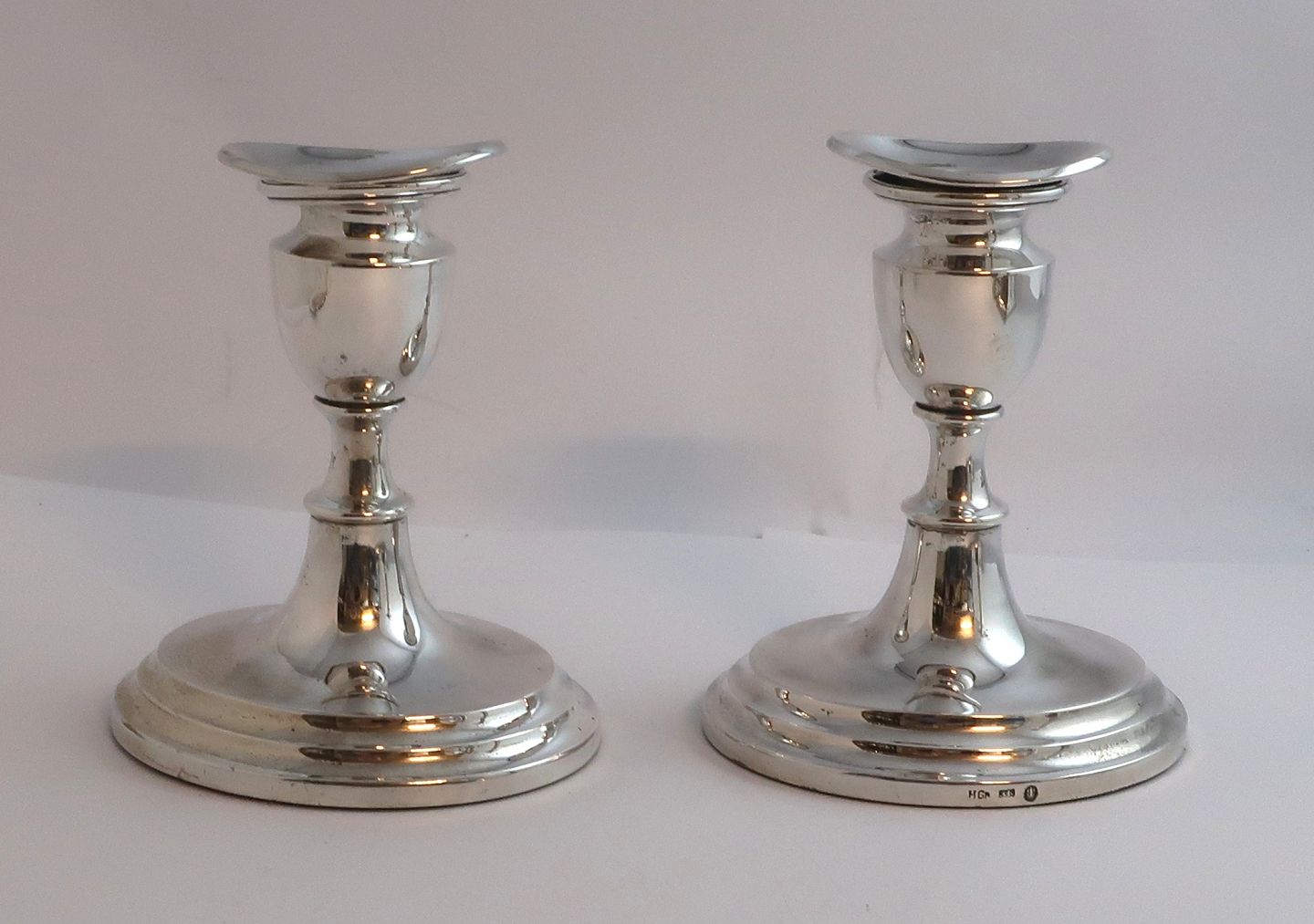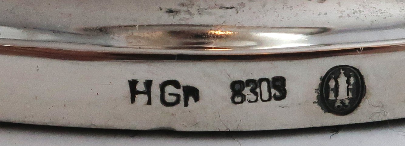 Hugo Grün, Kbh. (H.Gr). Sølvlysestager (830). Et par. Højde 12,5 cm. Produceret 1963.