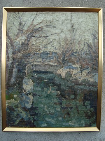 Maleri af E. Thorbjørn - "Kjærs Mølle Å"