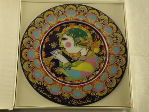 Weihnachsteller 1976, Bjørn Wiinblad, Rosenthal, diameter 29 cm. I original æske. "Engel mit Trompete" Pris: 450 kr.