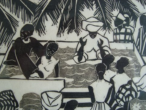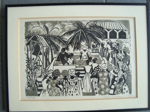 Træsnit - Astrid O. Andreasen - "Douala" 1956.