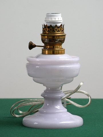 Hvid opaline petroleumslampe. Ændret til elektricitet. Højde 30 cm