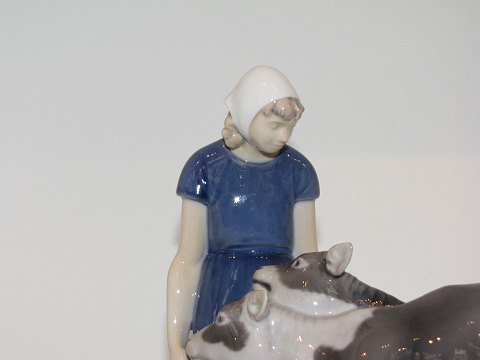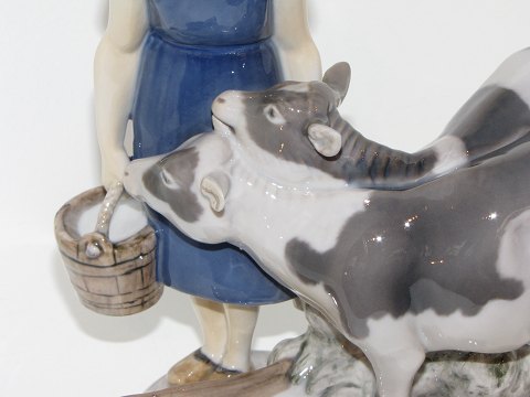 Large Bing & Grøndahl Figurine, farm girl with two calves.