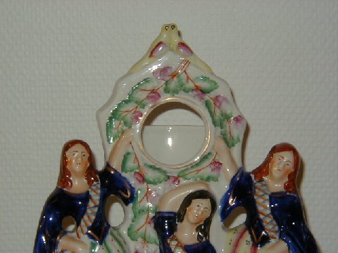 En smuk Staffordshire Figur med plads til lommeur i toppen. Måler 28 x 19 cm.