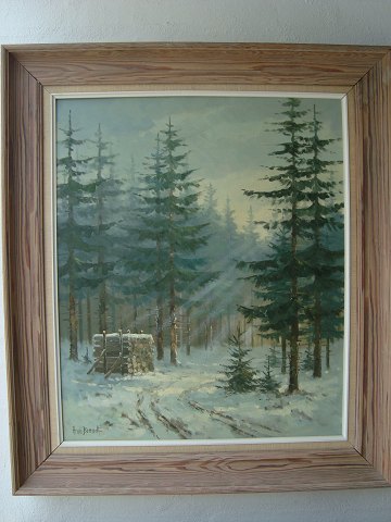 Maleri - Arne Brendt - "Vinterlys i skoven" 1982.