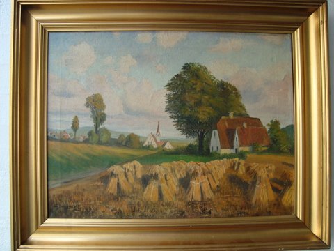 Høstlandskab med tysk landsby med kirke i baggrunden 1921.