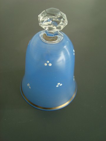 Glas bordklokke med lyseblå fond.