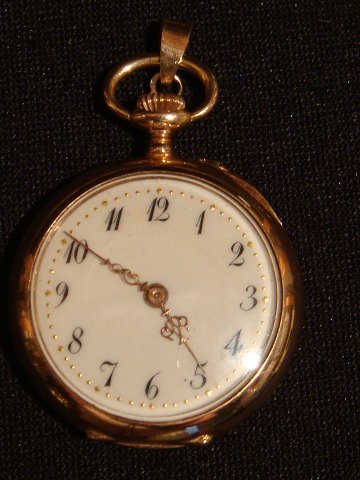 Ladies Pocket ur.Guld: 14k 585th Stamped J.C.F. Diameter: 3.2 cm. Thickness: 1.9 cmTotal Height: 4.5 cm. The watch is beautiful and well maintained.