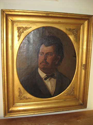 Portræt af herre med sort halsbind. Maleriet er i en meget smuk guldramme