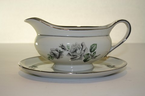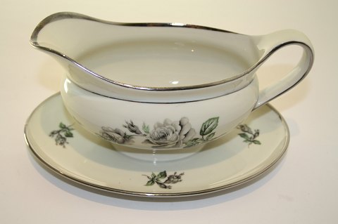 Text available in Danish: Kjøbenhavns Porcellains Maleri. Vallø 1007 med platinkant, Grøn rose. Fra slutningen af 1930'erne.