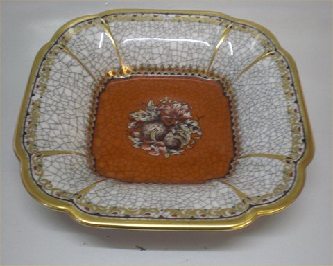 Dahl Jensen Cracquelé 188-617 DJ Fad, rødt med blomster på gråt 25.2 x 25.2 cm. Krakelé-glasur mærket med kongelig krone og DJ Copenhagen i hel og fin stand.