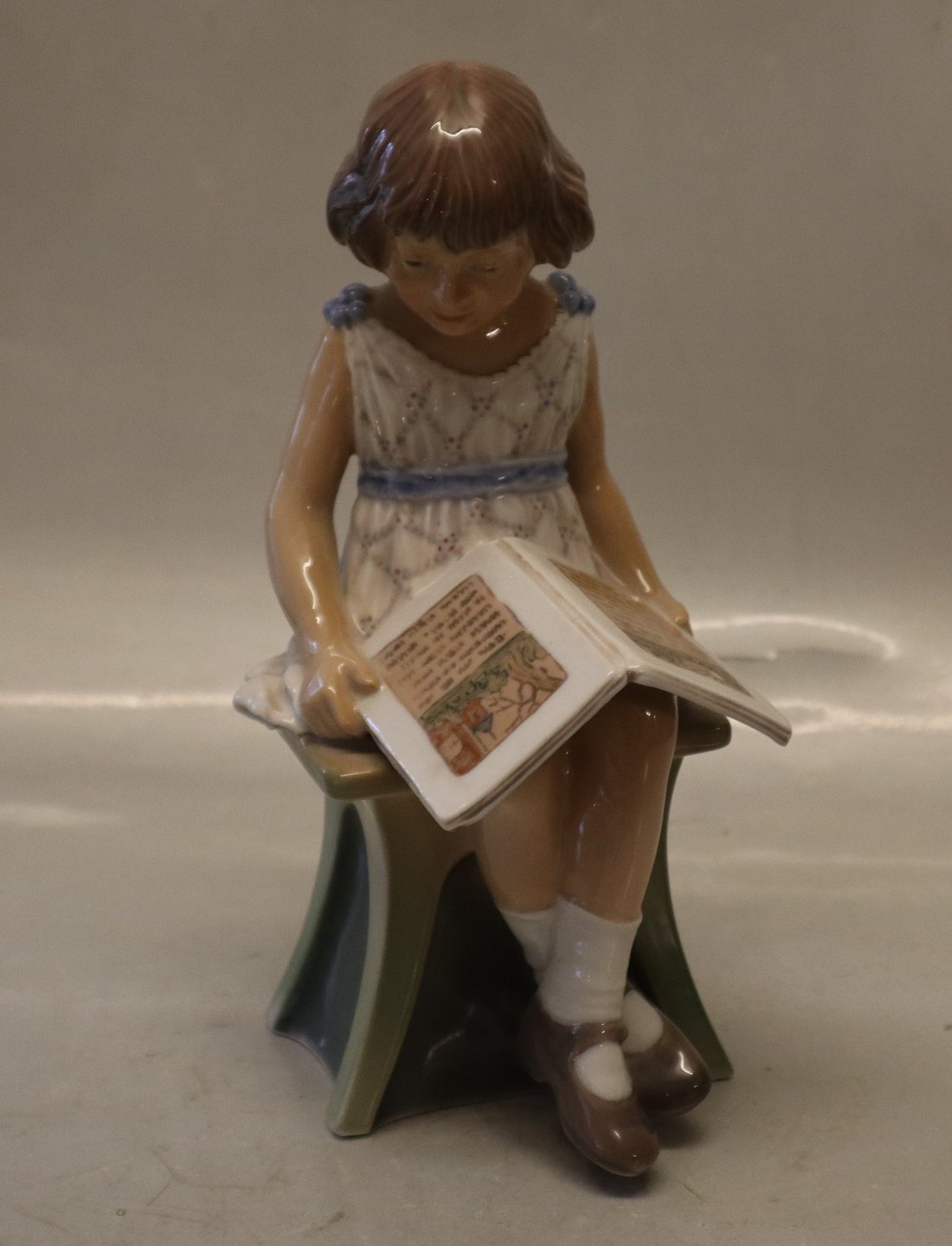 Dahl Jensen 1107 Pige med bog (DJ) 21 cm. 1. sortering Mærket med kongelig krone og DJ Copenhagen i hel og fin stand. Læsende pige
