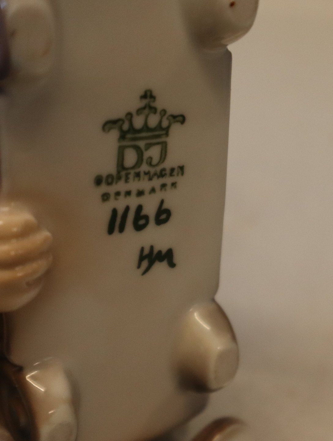 Dahl Jensen 1166 Dreng med bil 14 cm (DJ). Mærket med kongelig krone og DJ Copenhagen i hel og fin stand.