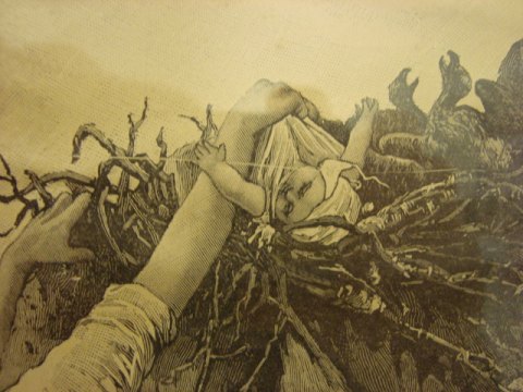 Motiv - Mor tager sit barn fra ørnerede før ørnen kommer.