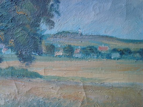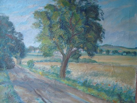Maleri - Vej gennem landskab - i smukke lyse farver 1945.