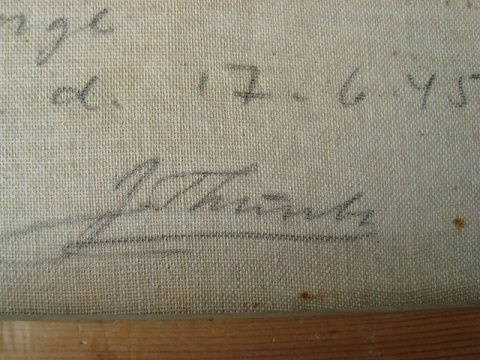 Sign.: Usigneret, men bagpå lærred dateret 1945 og signeret - J. Thruntz(??)(se foto).