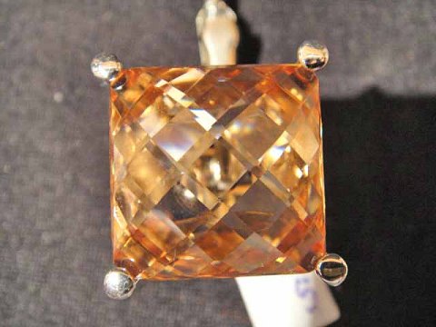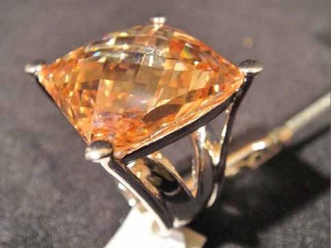 Ring med stor farvet krystal på 2x2 cm.