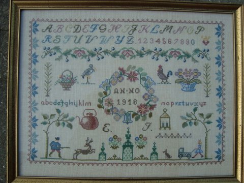 Smuk indrammet navneklud fra 1918