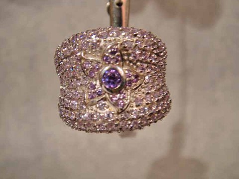 Med lilla krystal i midt omkranset af talrige brillant slebene krystaller.