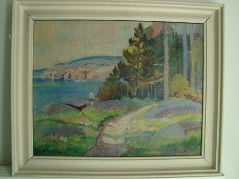 Maleri af Nis Stougaard - Parti fra Bornholm.