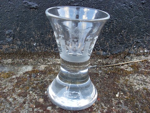 Gammelt frimurer glas med slibninger på kumme. Højde 12cm.