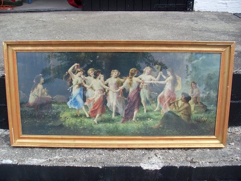 Meget smukt tryg forestillende 10 dansende jomfruer i blad forgyldt ramme.