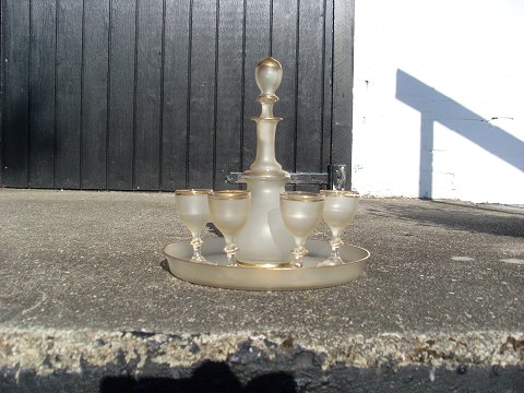 Likør sæt bestående af karaffel, 4 glas samt bakke.