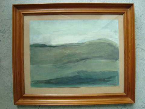 Gouache af Oscar Nicolaisen - Grønt landskab 1954.