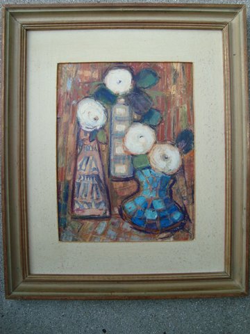 Bagpå betegnet - Opstilling med (blå vase)vaser samt label med "privat" og udstillingsnummer "14".