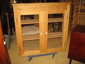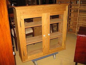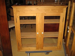 Køkkenskab / Vitrineskab afsyret fyrretræ med 2 glaslåger Originalt skab Restaureret. mål B 105, H 100, D 31 cm. 6726/30-P Kan males efter eget ønske.