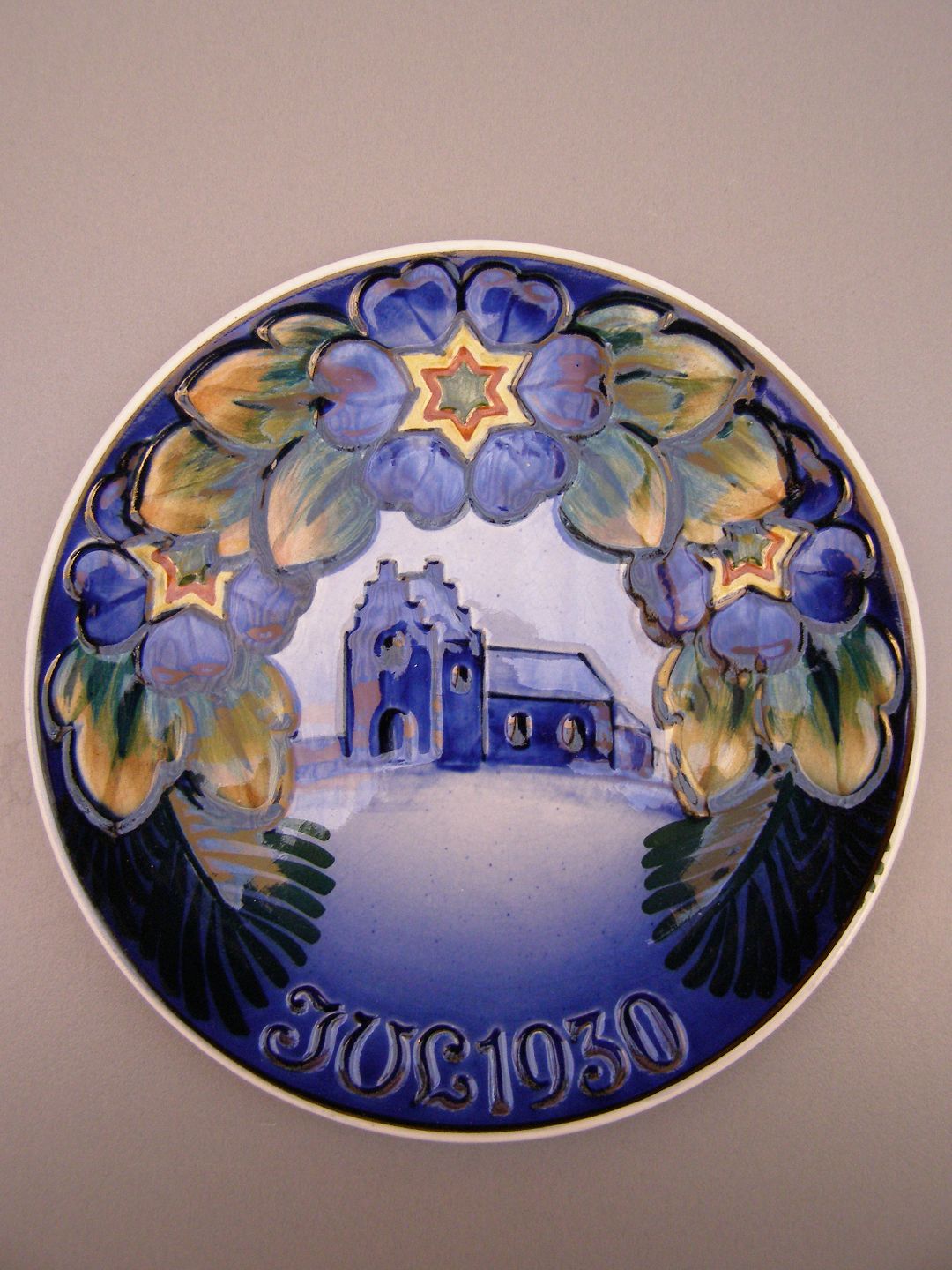 Aluminia 1462/1407 juleplatte med landsbykirke og stjerne